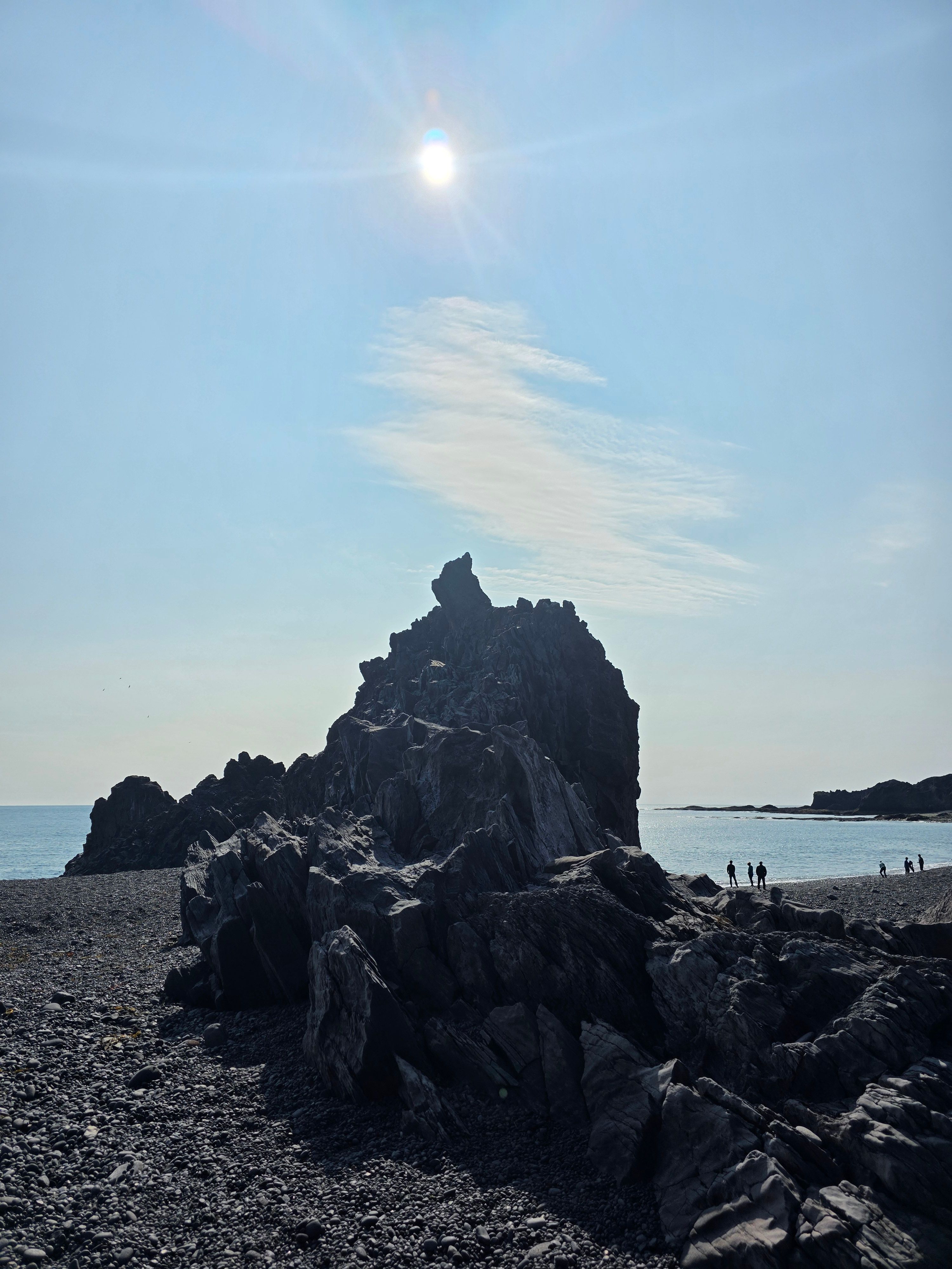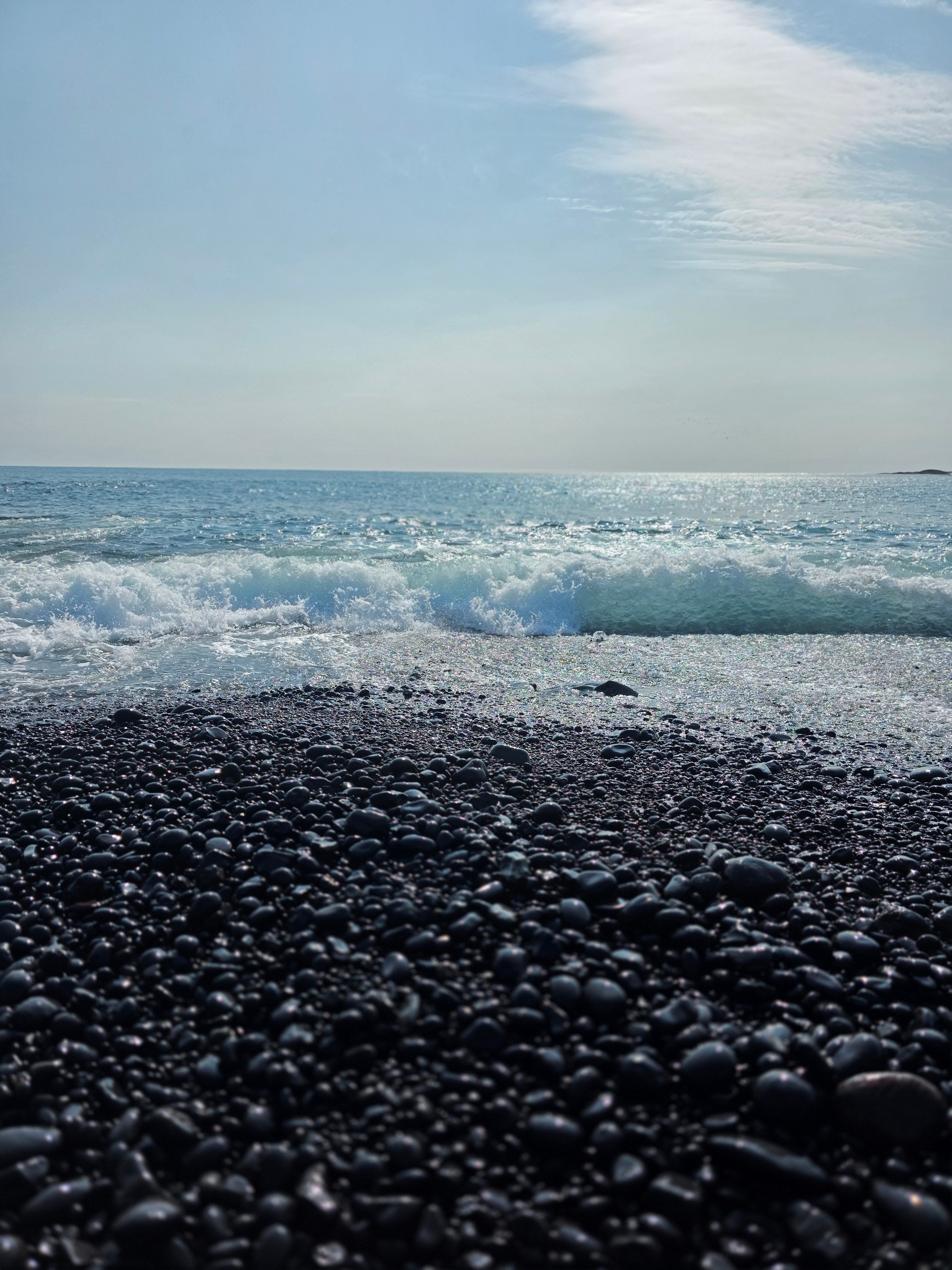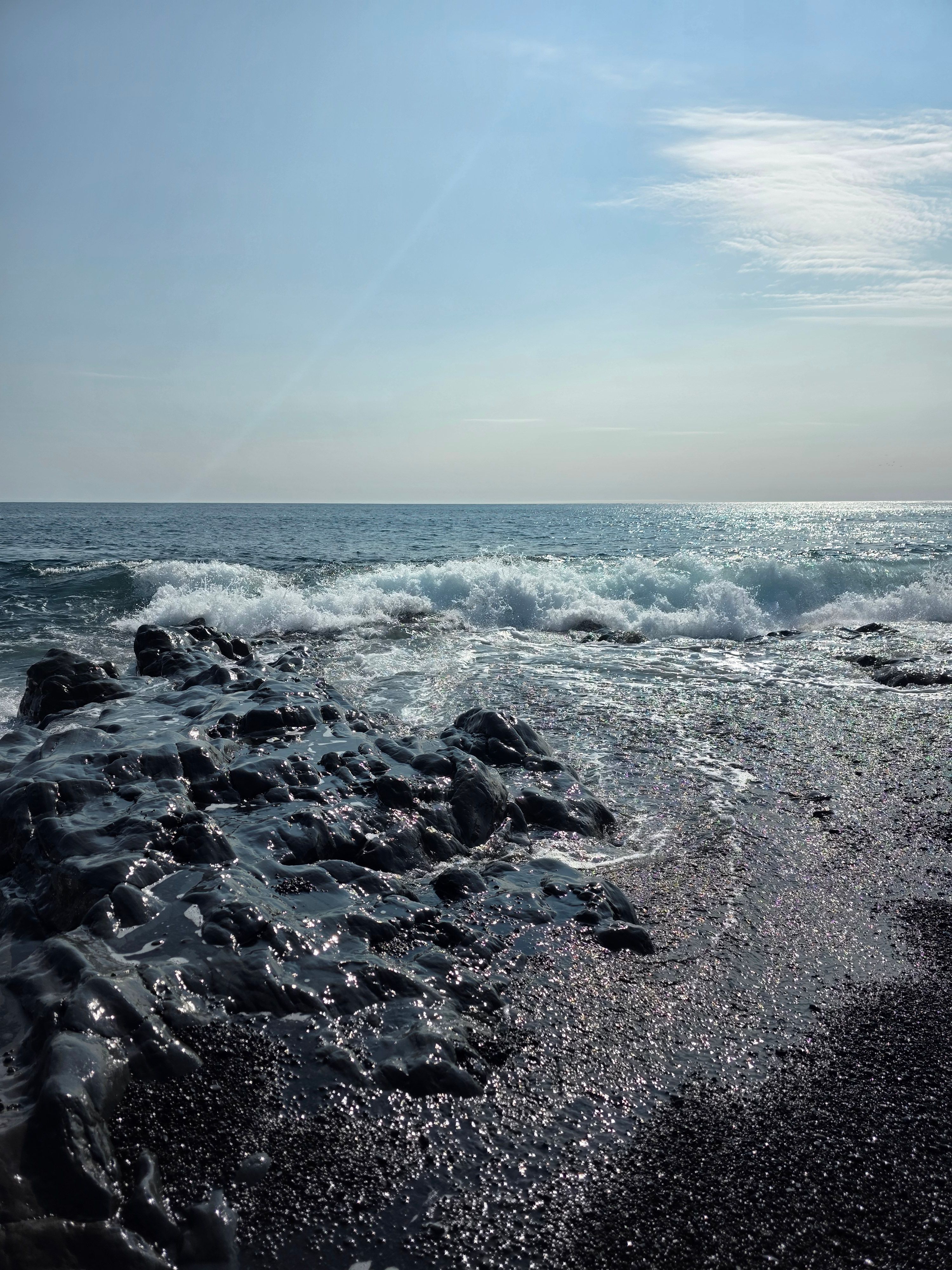 Beach type: Black pebble beach