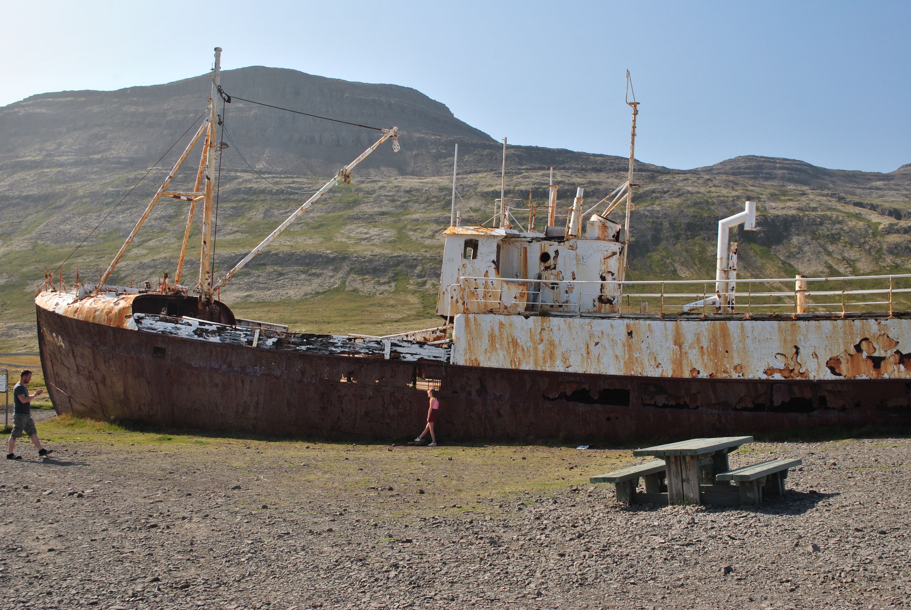 A photographer's dream — a vast rusting whaler on a deserted Westfjords beach, with no other tourists for miles.