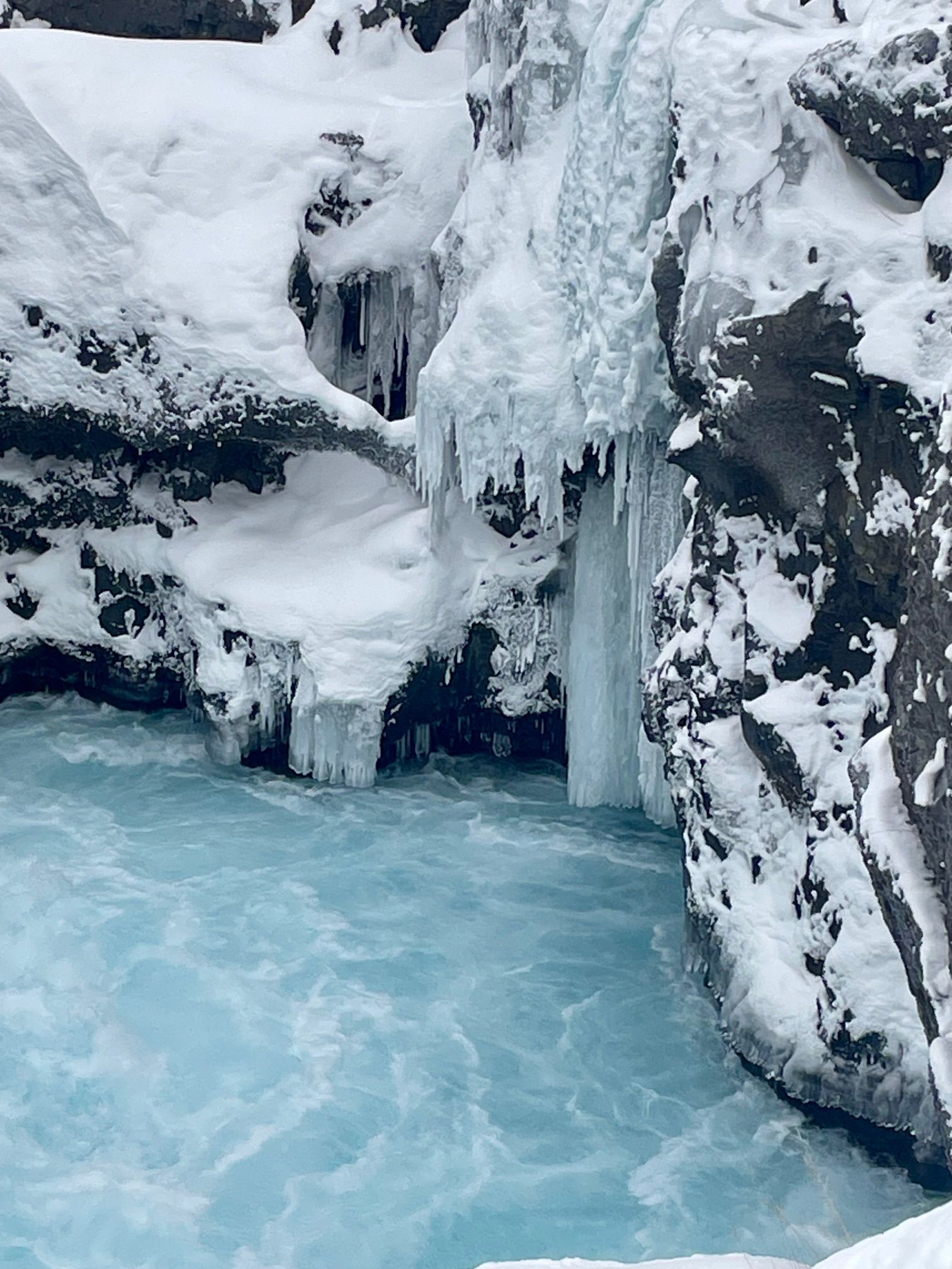 Water emerges directly from beneath a 900-year-old lava field
