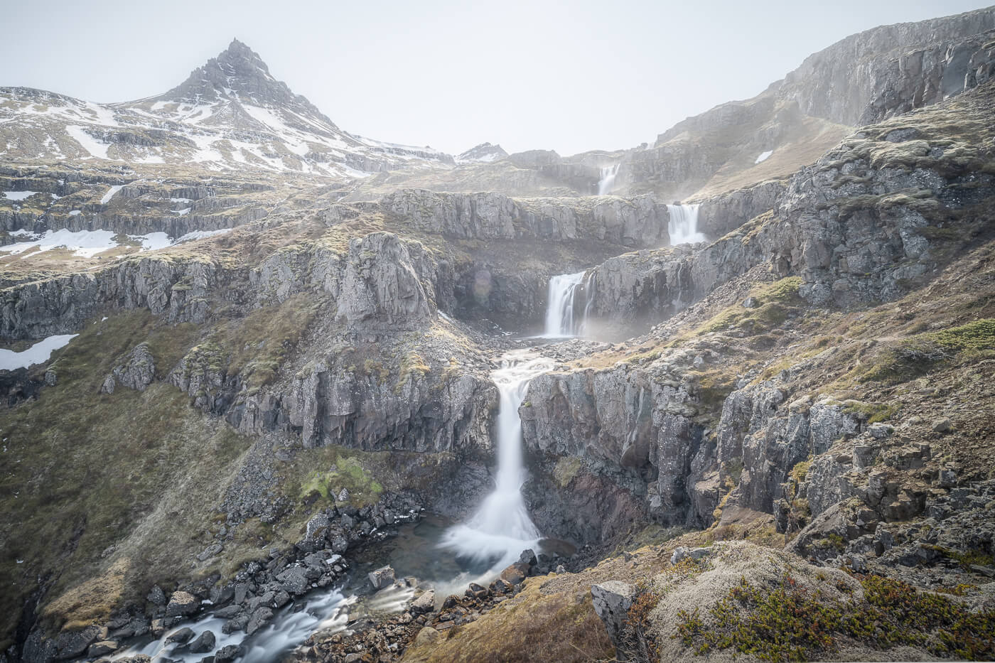 Klifbrekkufossar is a remarkable waterfall in Iceland. Klifbrekkufossar is a stunning waterfall located in East Iceland. This magnificent cascade showcases the raw power and beauty of Iceland's landscape. ... Klifbrekkufossar is a beautiful cascade of five waterfalls in the remote Mjóifjörður fjord of East Iceland. The falls drop in a staircase formation from the highland plateau above, each tier slightly different in character — some wide and fan-shaped,. This location offers visitors a unique opportunity to experience Iceland's natural beauty and cultural heritage.