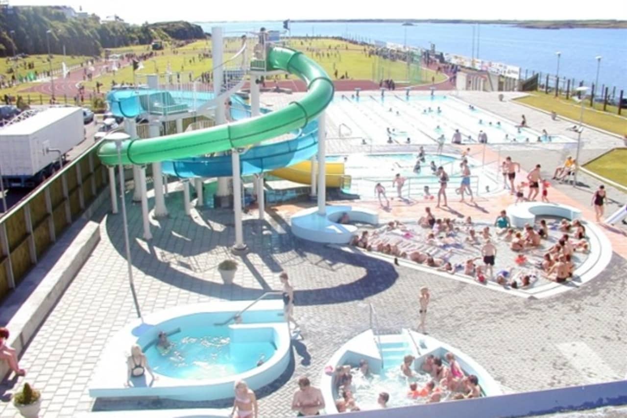 Guests must shower without swimwear before entering the pool, following Icelandic swimming pool hygiene rules.