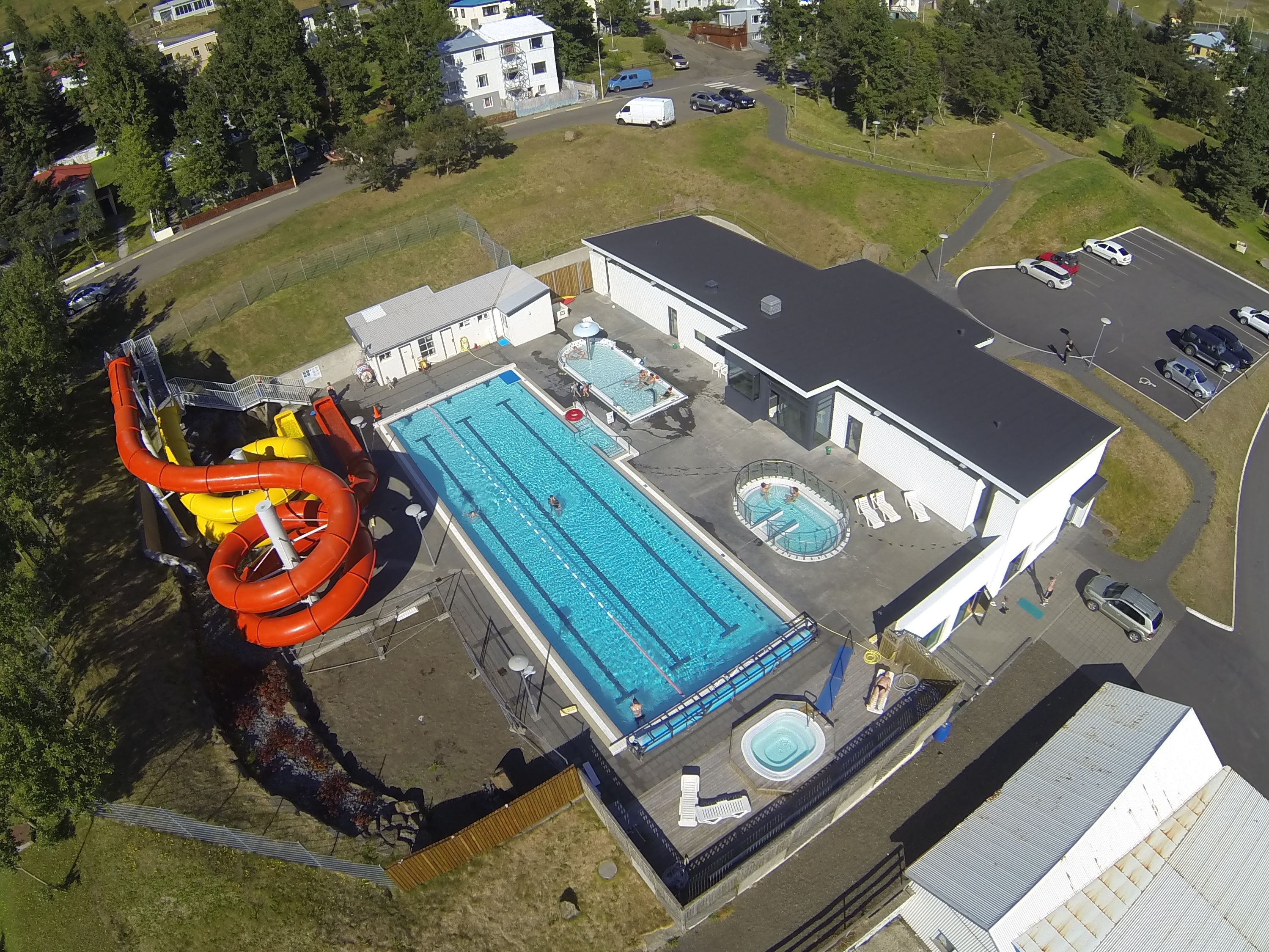 Neskaupstaður swimming pool is located in the town of Neskaupstaður in East Iceland. The facility offers outdoor pools and geothermal hot tubs surrounded by dramatic mountains.